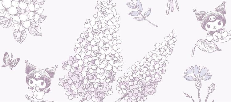優しいパープルの地色に、ライラックやヤグルマギクなど